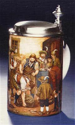Porzellankrug mit Zinndeckel