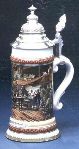 Porzellankrug mit Façonspitzdeckel und Bodenbild