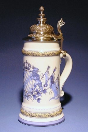 Porzellankrug mit Façonspitzdeckel und Bodenbild